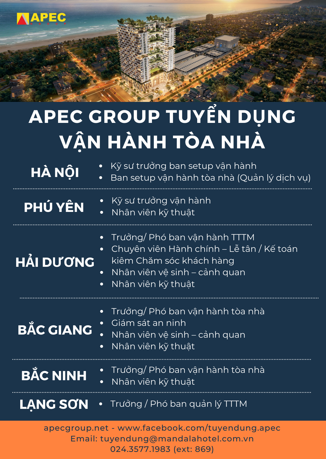 - Kinh nghiệm: 2 năm trở lên tại vị trí tương đương, ưu tiên ứng viên đã làm tại mảng Vận hành tòa nhà, khách sạn, Trung tâm thương mại...