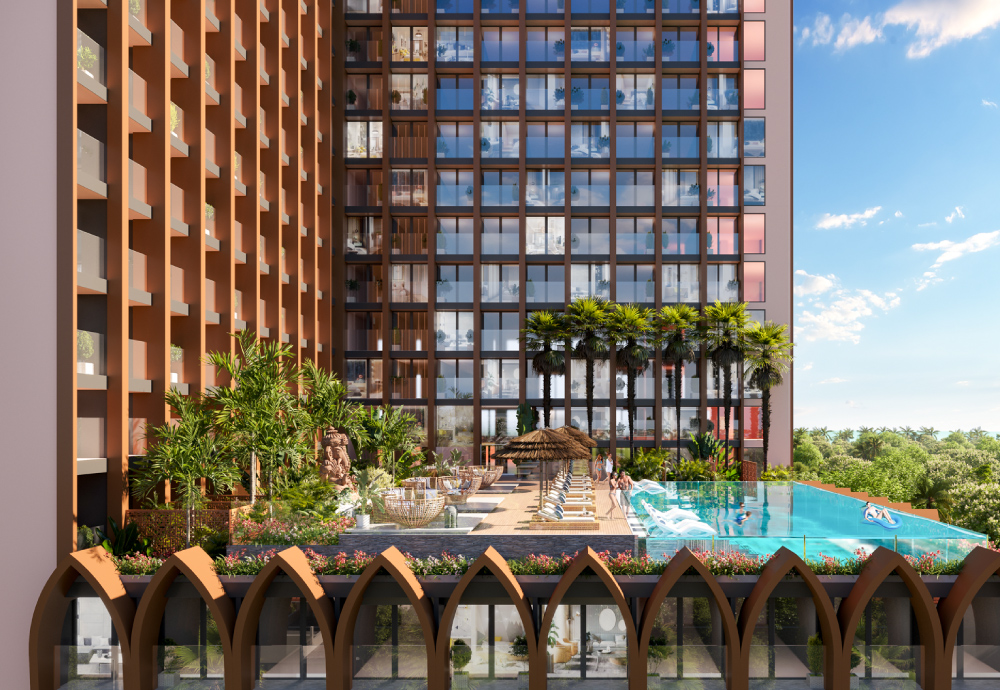 Mang dáng vẻ của một tòa nhà cao tầng hiện đại, “kiến trúc vòm cuốn” – một nét chấm phá đặc trưng của kiến trúc Champa được đưa vào thiết kế một cách tinh tế, thể hiện sự hài hòa cân đối và hoàn mỹ cho Apec Mandala Grand, đồng thời lưu lại dấu ấn kiến trúc Champa trường tồn.