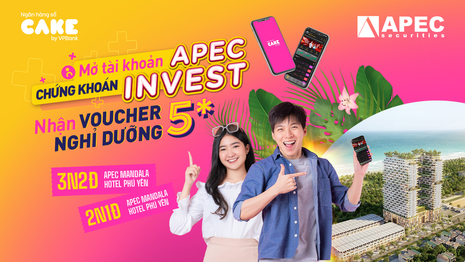 TẶNG NGÀN KỲ NGHỈ 5 SAO CHO KHÁCH HÀNG CAKE MỞ TÀI KHOẢN CHỨNG KHOÁN APEC INVEST