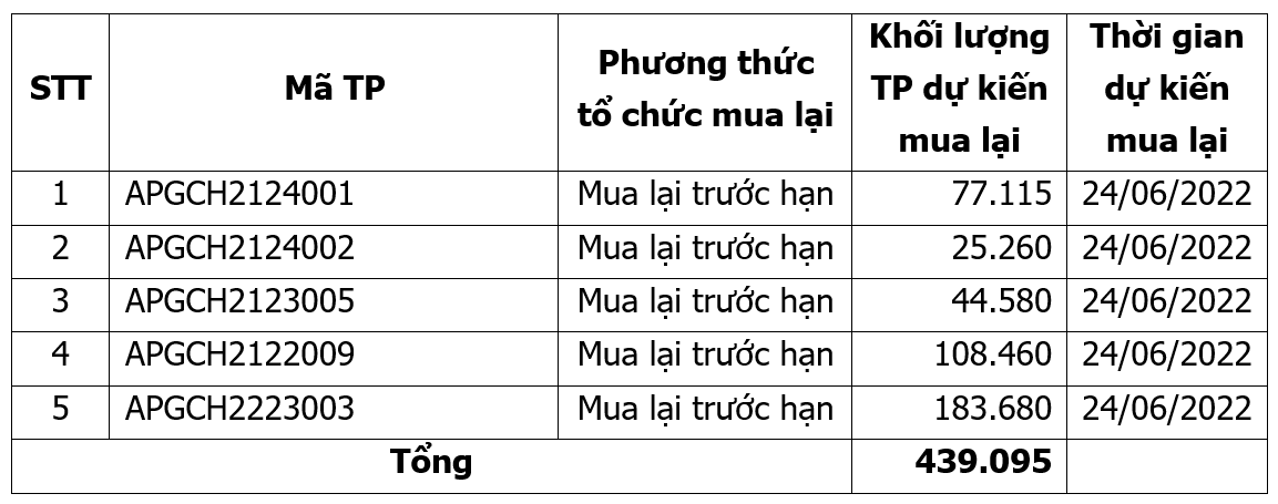 Thông báo dự kiến mua lại trái phiếu APEC Group 06/2022