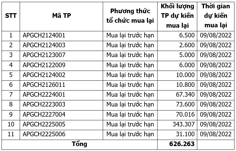 Thông báo dự kiến mua lại trái phiếu APEC Group đợt 1 tháng 08/2022