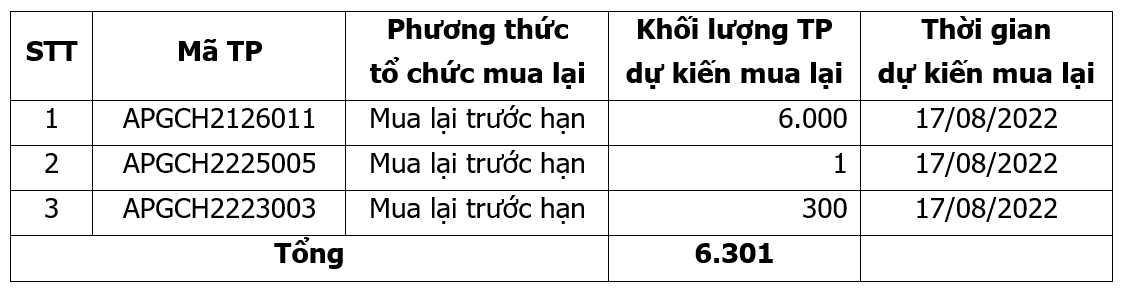 Báo cáo kết quả mua lại trái phiếu Apec Group tháng 08/2022